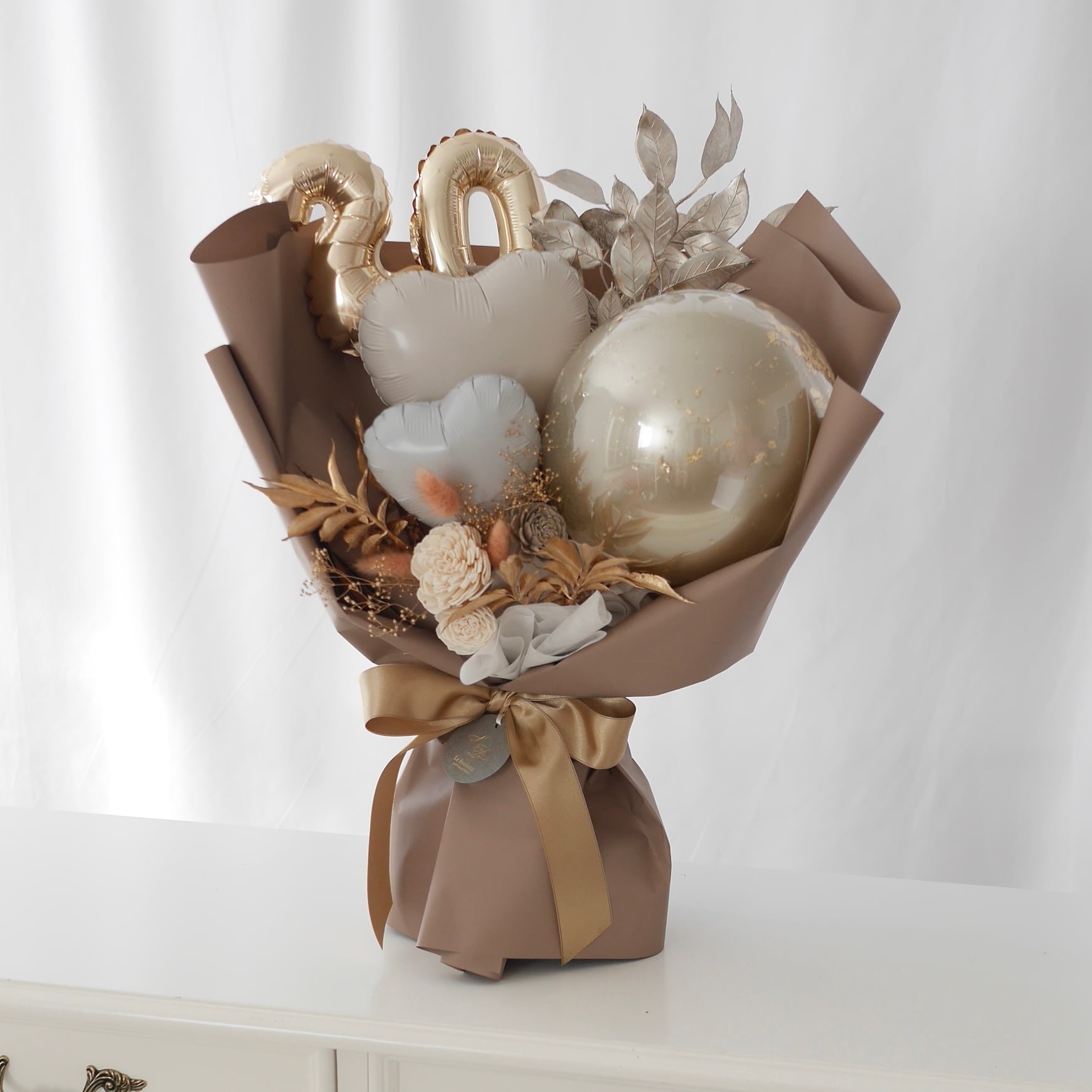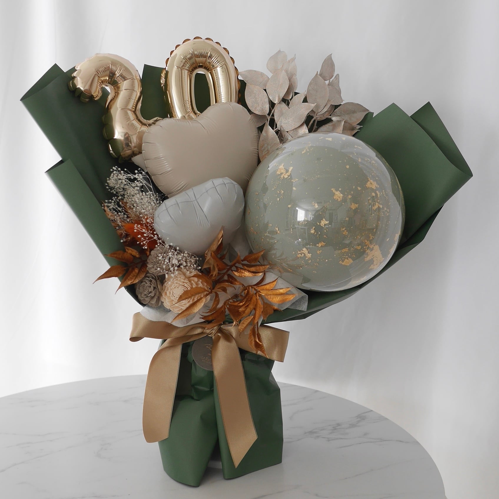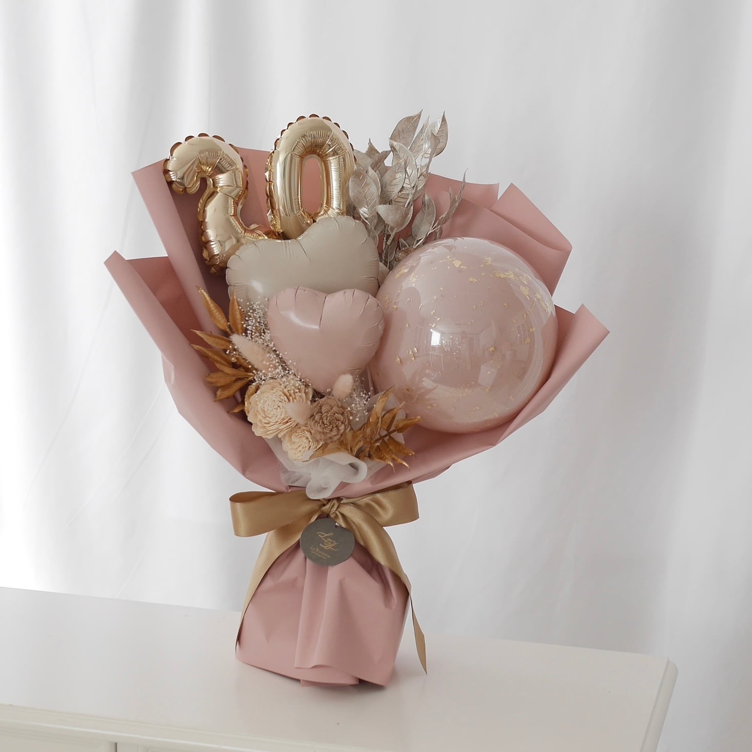 【名入れ可/全6色】2026成人式|トレンドのくすみカラーバルーンブーケ◆金箔&ドライフラワー入り