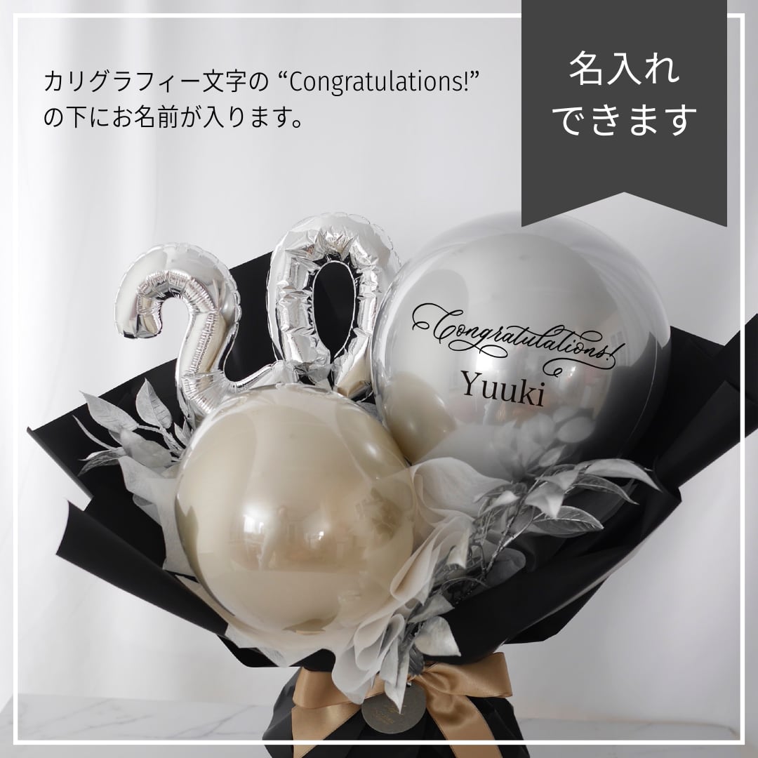二十歳の記念日をクールに彩る、スタイリッシュなバルーンブーケです。
