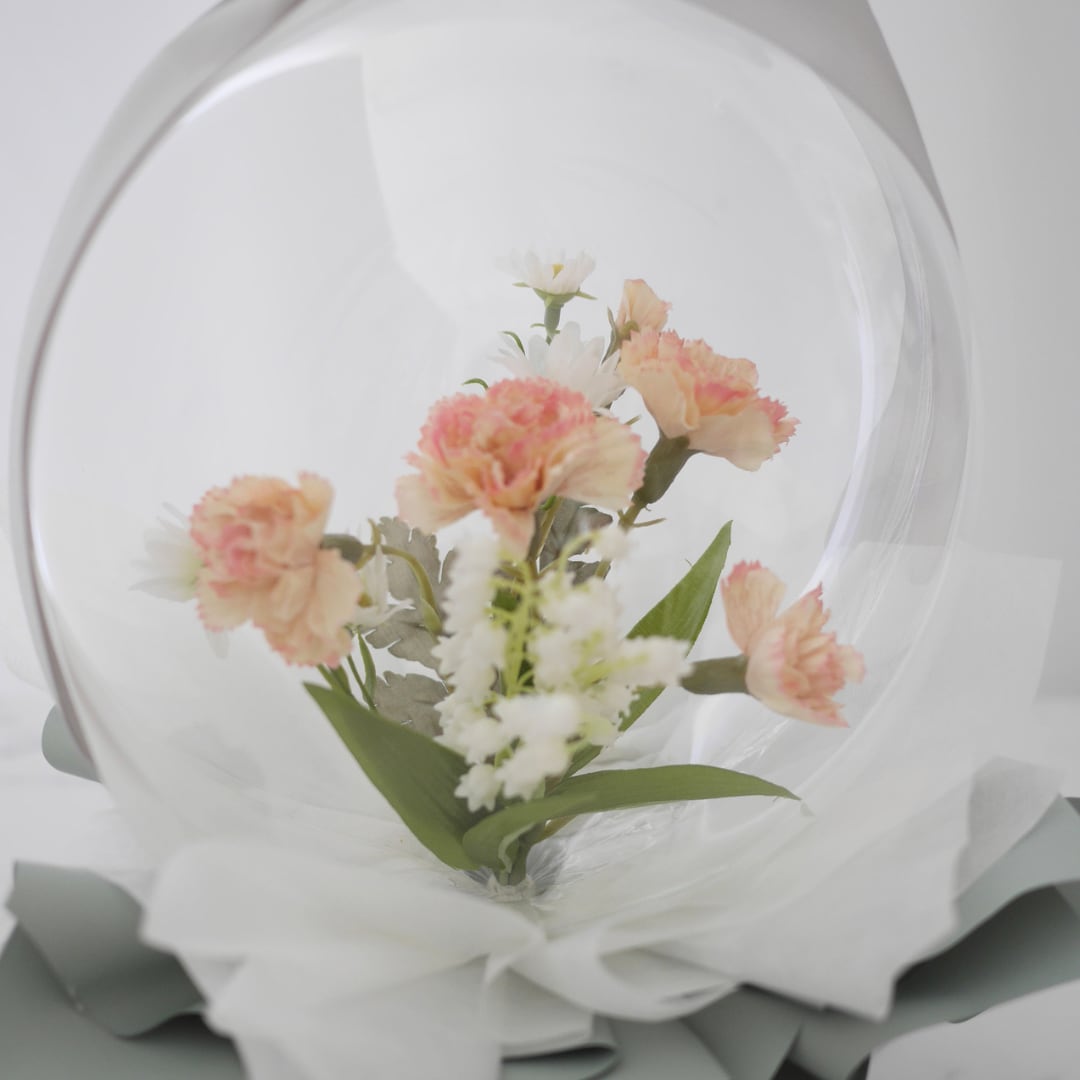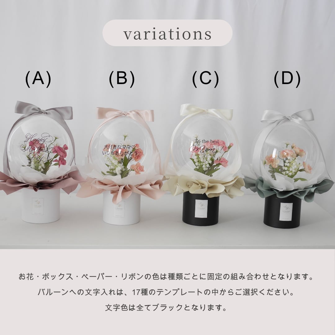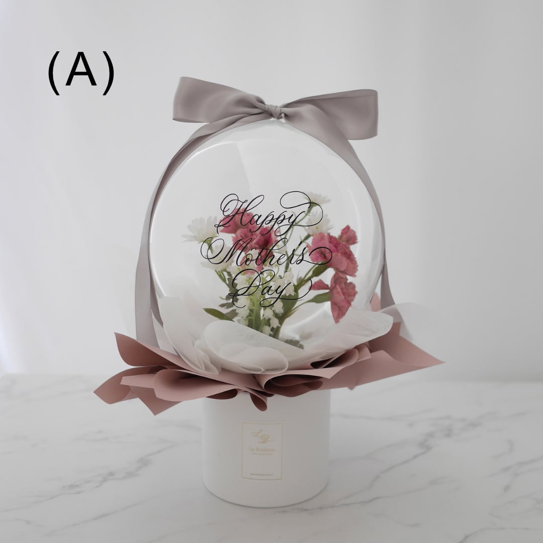 クリアなバルーンの中に可憐なお花をふんわりと閉じ込めた、母の日限定のギフトです。
