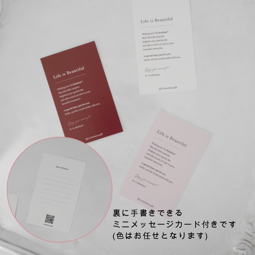 ラッピングで裏面にメッセージが書ける当店オリジナルのカード(名刺サイズ)もお付けしております。