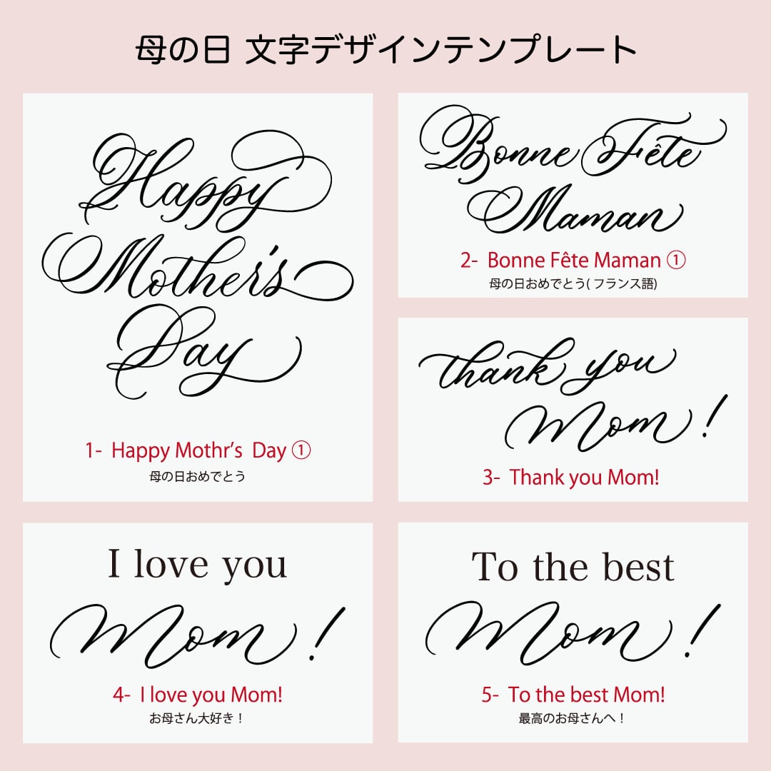 さりげなくおしゃれな英語フランス語のメッセージや、心に真っ直ぐ届く日本語デザインなど、お母様の雰囲気や伝えたい想いに合わせてご選択ください。