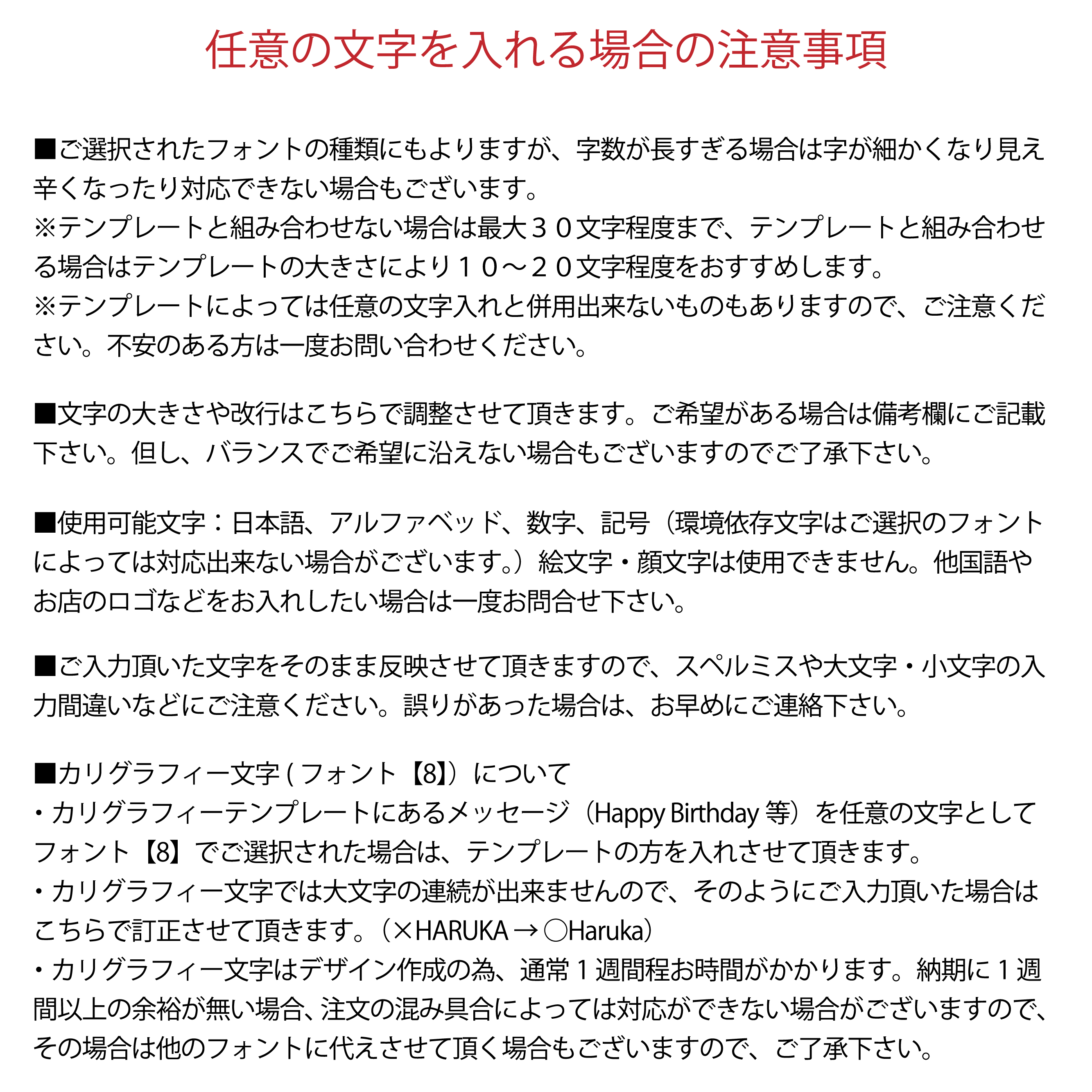 (当バルーン商品ページで上記項目を選択及び入力されましても、それらは全て無効とさせて頂きますので、ご了承お願い致します。)