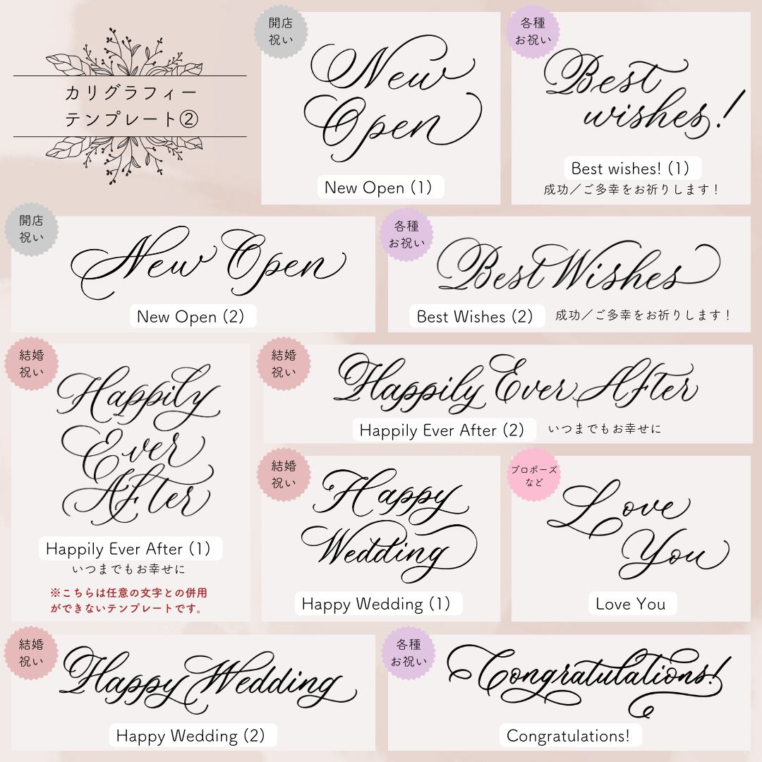 カリグラフィーテンプレート見本・任意の文字のフォント見本